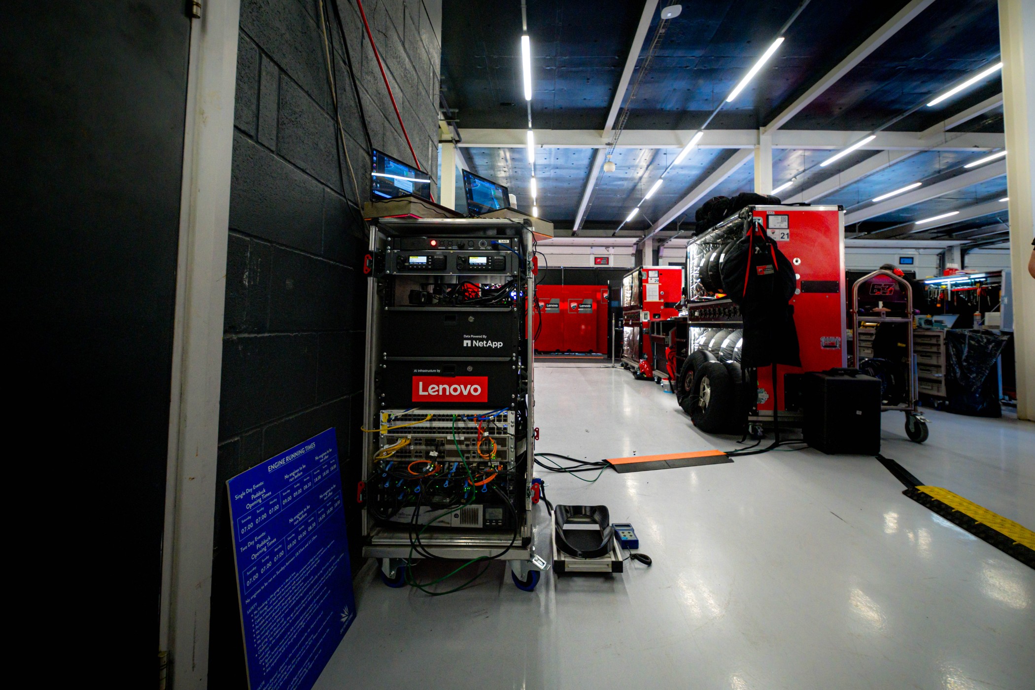 Lenovo’s servers and laptops are not spared. “Our edge servers are sometimes next to tire warmers that radiate 100 degrees of heat,” says Grassilli.