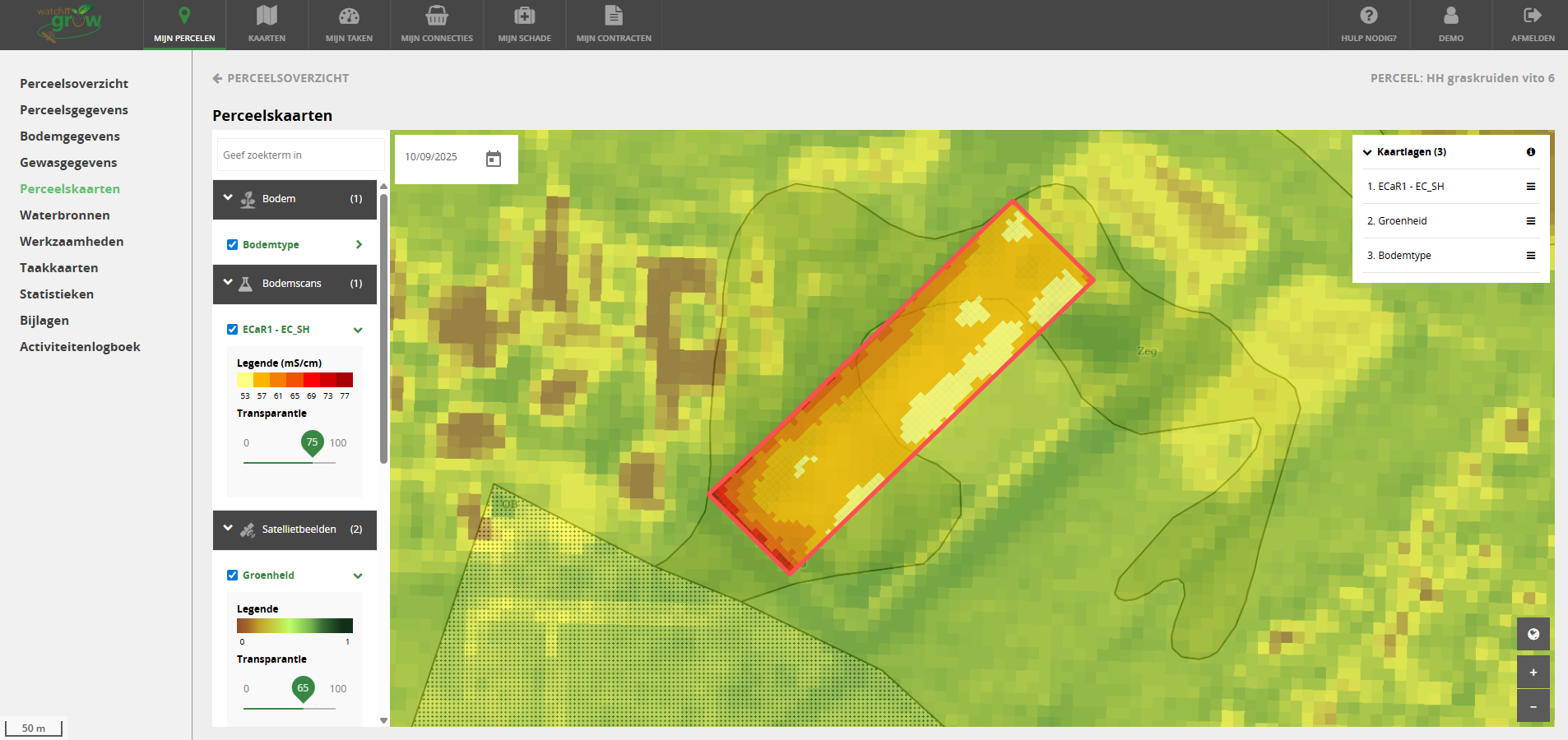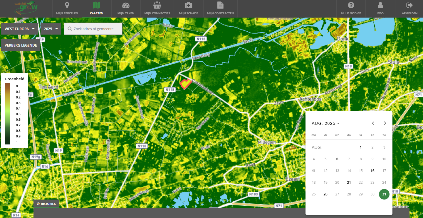 The final destination of the processed images is the online platform WatchITgrow, where farmers come into contact with the technology. Nearly 650 farmers now use the free platform designed by VITO. When a farmer registers (anyone can do this, by the way), they get an overview with all maps of their registered plots.