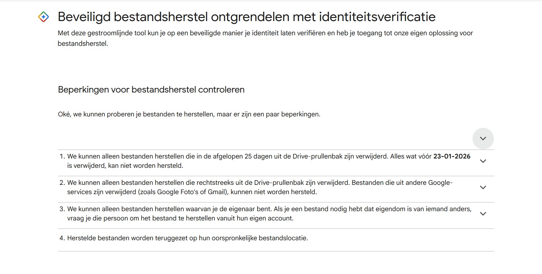 Did you make a mistake again? Then recovery becomes a lot more complex and you will have to ask higher powers for help. In this context, that doesn’t mean lighting a candle in church, but submitting a recovery request to Google. Through the Google Drive help page, you will find the option Request file recovery.