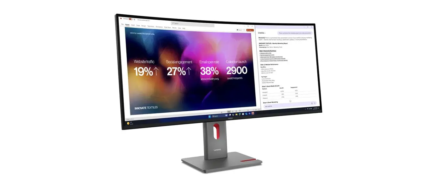 Lenovo also announces some devices to use in tandem with the PCs. For instance, the manufacturer launches the ThinkVision P40WD‑40 monitor. This display is very wide with an aspect ratio of 21:9 and a resolution of 5,120 x 2,160 pixels across a screen diagonal of 39.7 inches.
