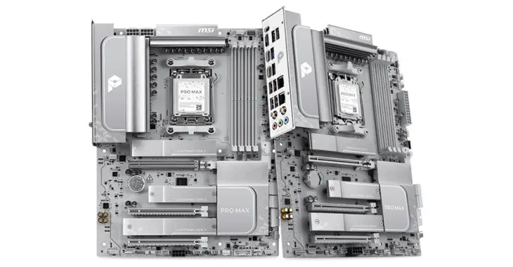 Finally, we find separate PC components in the Pro Max family. These parts are also white and fit perfectly with the design of the above devices. First of all, we have the Pro Max X870E-A Wifi motherboard that supports Wifi 7 and USB-C, and is compatible with the latest AMD processors.
