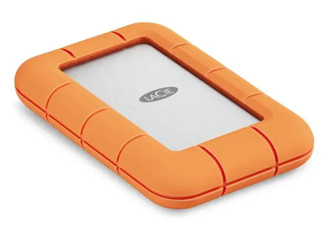 Seagate offers the Lacie Rugged SSD4 with capacities up to 4TB. The SSD is, of course, equipped with an orange bumper that protects the device against drops of up to 3 meters. The IP54 certification indicates that the drive is resistant to dust and splashing water.