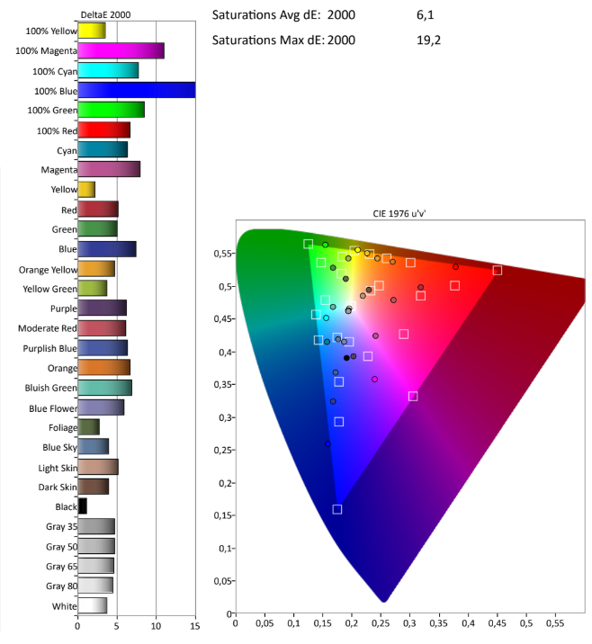 Dark shades and primary colors, especially blue, show larger deviations, which graphic designers will immediately notice. For basic users, this is not a problem. The maximum brightness is not very high, but still adequate for office environments. Even outdoors and in bright sunlight, the screen remains surprisingly readable.